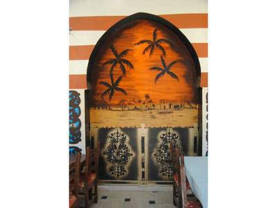 Enter the hotel through the domed reception area to begin your own experience. The first things that you will notice are the murals on nearly every wall – reception, restaurant, the main staircase and passageway. These were painted by a prominent local artist, and are unique to any hotel on the West Bank. Another feature of the hotel is the antique chandeliers that hang from the domes. Below, you can see a gallery of some of these wonderful pieces of artwork. |